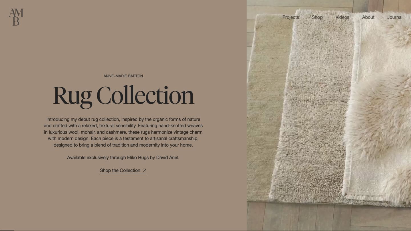 The new visual and digital language of AMB Design translates her philosophy into an elegant, tactile system — where typography, texture and tone weave a coherent, sensory narrative.