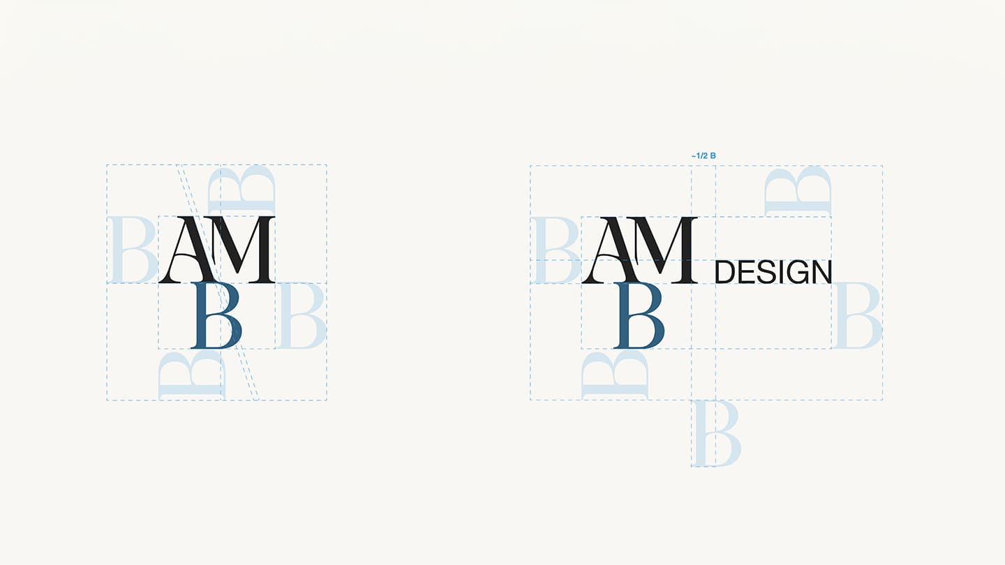 The AMB logotype was reimagined as a sculptural signature — an intertwining of initials that conveys both strength and grace.
